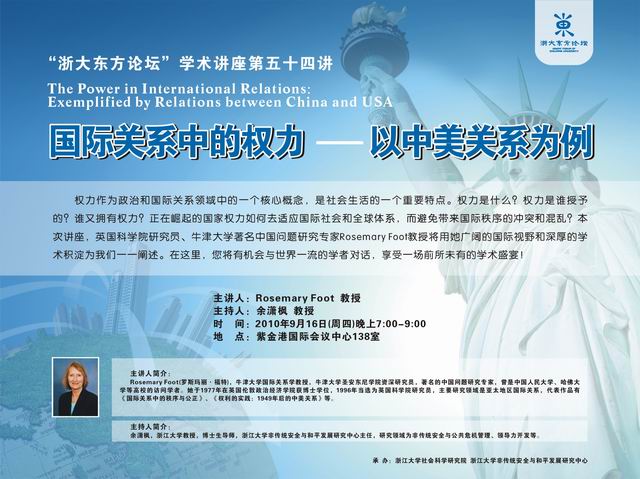 “浙大东方论坛”54讲 Rosemary Foot:国际关系中的权力:以中美关系为例
