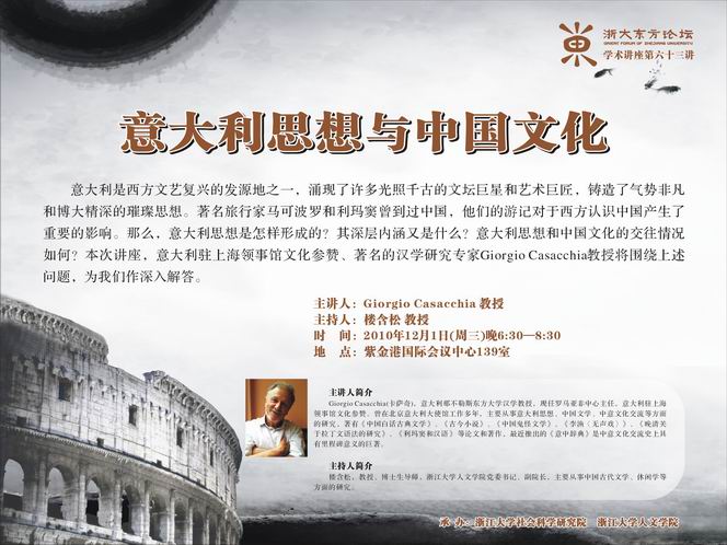 “浙大东方论坛”63讲 Giorgio Casacchia:意大利思想与中国文化