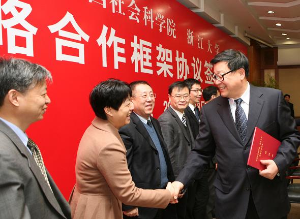 中国社科院常务副院长王伟光与浙江大学校长杨卫代表双方签署合作协议。浙江大学党委书记张曦、中国社科院副院长武寅出席仪式并讲话。浙江省社科院党委书记林吕建、浙江大学副校长罗卫东等出席。