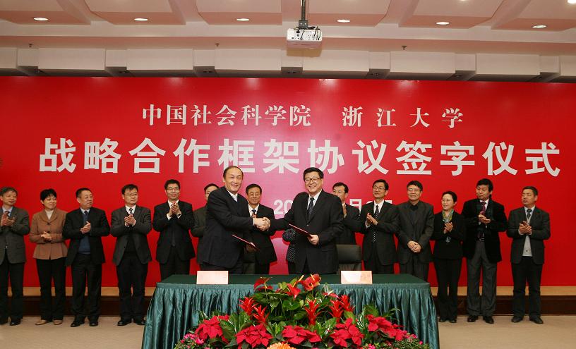 中国社科院是我国哲学社会科学领域的最高学术机构和智库,拥有30多个实体研究院、所,近百家学术期刊,100余个研究中心和一个我国最早成立的文科研究生院。近年来,中国社科院高度重视与高等院校和相关研究机构等开展战略合作,以共同推进哲学社会科学的繁荣和发展。2005年,中国社科院与浙江省社科院启动战略合作。本次与浙大签约,是省院合作的延续和深化。