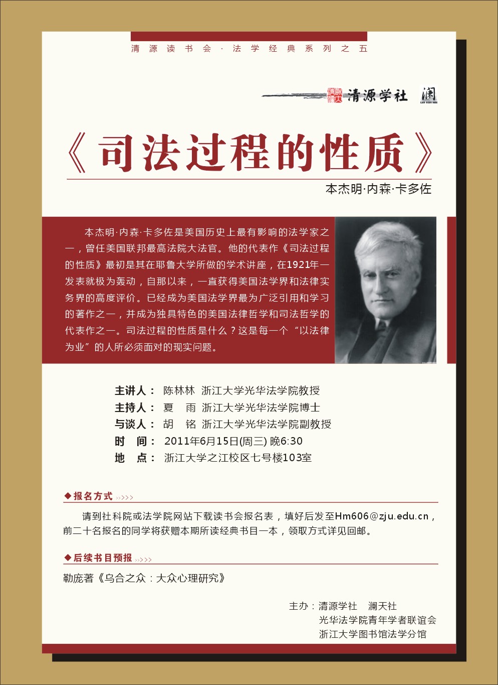 清源读书会•法学经典系列之五:本杰明•内森•卡多佐《司法过程的性质》