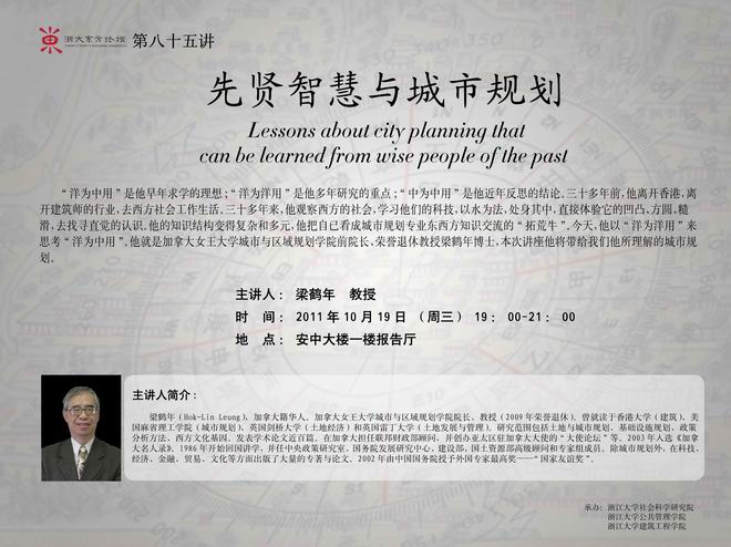 “浙大东方论坛”第85讲 梁鹤年:先贤智慧与城市规划
