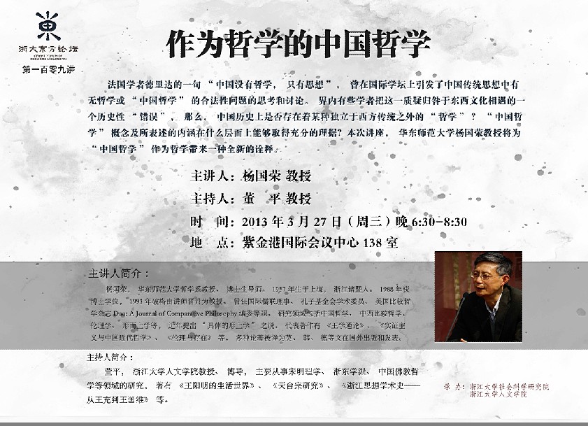“浙大东方论坛”第109讲 杨国荣:作为哲学的中国哲学
