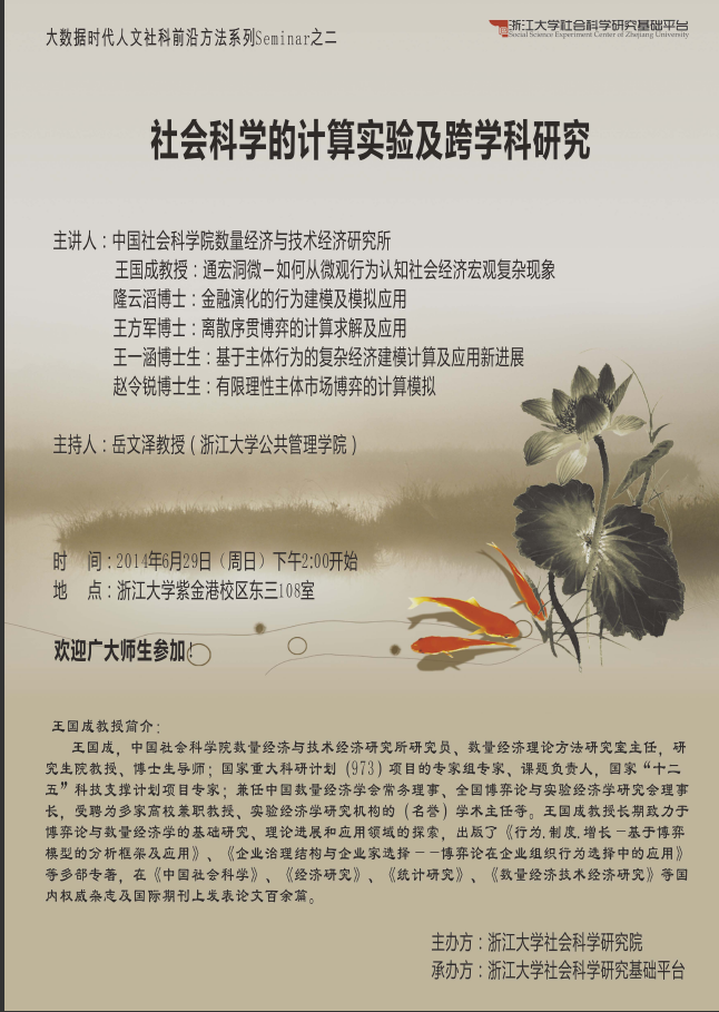 此次,王国成教授携团队成员来我校做学术报告,将与浙大师生交流社会科学的计算实验及跨学科研究最新进展,分享大数据时代社会科学发展新动向。