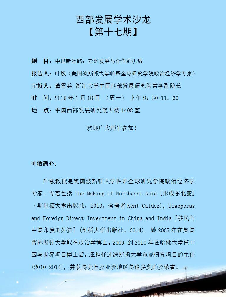 西部发展学术沙龙第17期——中国新丝路:亚洲发展与合作的机遇
