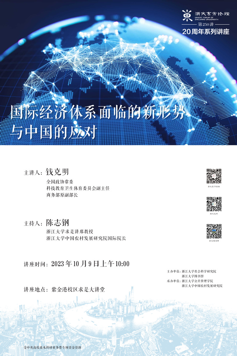 “浙大东方论坛”第250讲预告 | 钱克明:国际经济体系面临的新形势与中国的应对