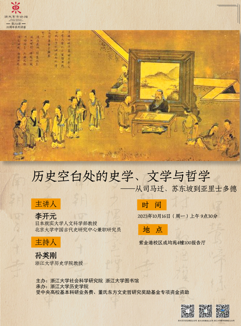 “浙大东方论坛”第251讲预告 | 李开元:历史空白处的史学、文学与哲学——从司马迁、苏东坡到亚里士多德