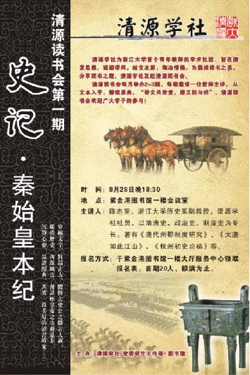 Qingyuan Institute, the first academic society for young teachers of Zhejiang University, aims to inspire thoughts, improve learning, make friends and cultivate tastes. Qingyuan Reading Party is initiated by Qingyuan Institute to popularize the reading atmosphere and share the fun of reading.