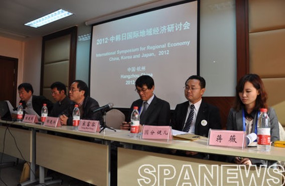 The Symposium, sponsored by Zhejiang University, Korean Regional Economy Association, Japan Fukushima Government (Shanghai Office), Japan Okinawa Government (Shanghai Office), Zhejiang University Research Institute on Regional and Urban Development, Zhejiang University Research Institute on Government and Enterprises and Zhejiang University Urban Development and Management Department, was held in Zhejiang University successfully in December, 2012. The distinguished guests present at the Symposium included Researcher Song Boo Yong, the newly-elected Director of Korean Regional Economy Association and Kyungnam Development Research Institute, Kim Il Tae, Director of Gwangju Chonnam Branch of Korean Regional Economy Association and Professor of Chonnam National University, Song Hae Ann, Director of Jeonbuk Branch of Korean Regional Economy Association and Professor of Jeonju University, Kang Tong Hee, Professor of Economics at Korean Kunsan National University, Keum Jung Hoon, secretary at Korean Regional Economy Association and other Japanese guests.